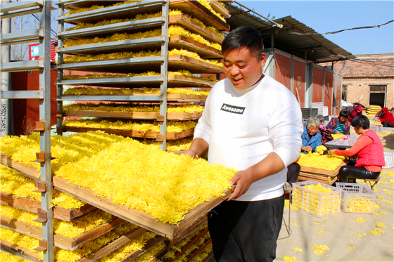 “在菊花種植基地采摘、挑揀、擺放菊花,一天能收入80多元,活不累,還能顧家,比外出打工強……”11月11日,在西華縣鑫豐菊花種植專業(yè)合作社菊花烘干車間旁,來自清河驛鄉(xiāng)腰莊村今年60多歲的村民樊景峰,一邊熟練地挑揀、擺放菊花,一邊高興地對記者說。