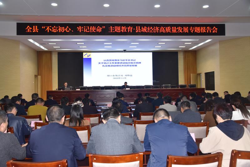11月14日,扶溝縣召開“不忘初心、牢記使命”主題教育·縣域經(jīng)濟高質(zhì)量發(fā)展專題報告會,特邀市統(tǒng)計局黨組成員、總統(tǒng)計師劉鋒磊作專題輔導(dǎo)。張穎波、姜永來、張建中、段然、王霄靈、趙紅亮、閆忠玉、尚守永、曹來凌等縣領(lǐng)導(dǎo)聆聽報告??h委常委、常委副縣長王霄靈主持會議。