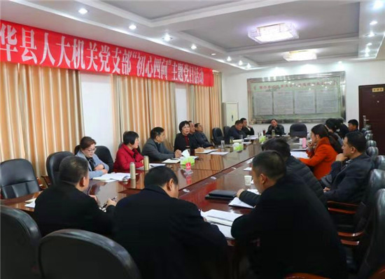 活動期間,全體黨員集體學習了中共中央政治局委員、全國人大常委會副委員長王晨《堅持和完善人民代表大會制度這一根本政治制度》一文,結合人大工作深入學習貫徹了黨的十九屆四中全會精神;傳達學習了省紀委〔2019〕4號文件通報、市委書記劉繼標的重要批示和全縣領導干部會議精神,進行了“不忘初心、牢記使命”主題教育應知應會知識測試。每位黨員圍繞“初心使命四問”,結合自身工作認真查找存在問題,在對標中“找差距”、“補短板”,敞開心扉談了體會、感想。
