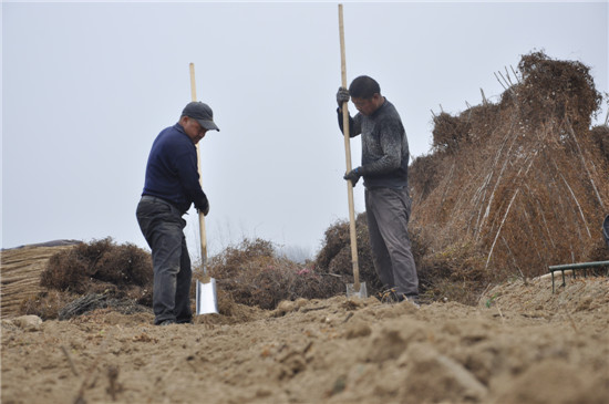 他從最早用尖頭鋼鍬開(kāi)始,逐漸改為扁頭鋼鍬,再改用目前的鋼筒鍬。耿金中說(shuō),挖山藥是一個(gè)體力活,也是一項(xiàng)技術(shù)活,挖山藥多少跟個(gè)人技術(shù)熟練程度有關(guān),因?yàn)樯剿幒艽?,用力分寸、下鍬角度及深淺不合適都易造成山藥折斷,影響品質(zhì)。
