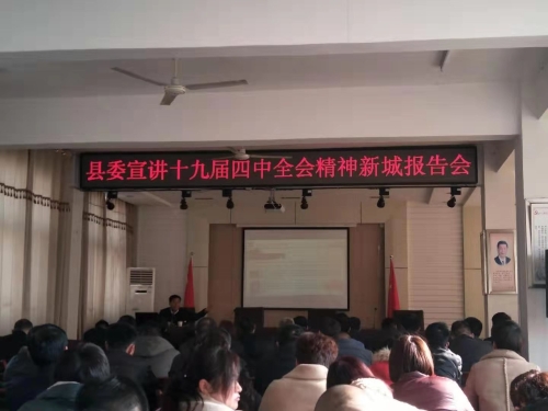 12月2日上午,鄲城縣委宣講團(tuán)成員邢偉到新城辦事處進(jìn)行十九屆四中全會(huì)精神宣講。新城辦事處黨工委書(shū)記王一博主持報(bào)告會(huì)。辦事處全體干部、直屬單位負(fù)責(zé)人、社區(qū)“三委”班子成員參加了報(bào)告會(huì)。