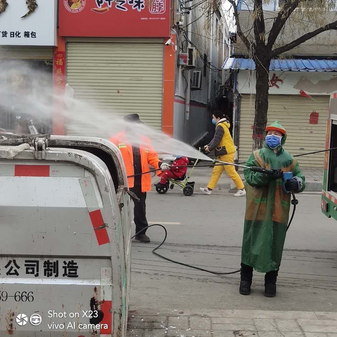 據(jù)了解,在疫情防控期間,按城管局環(huán)衛(wèi)部門成立46人專職隊伍開展消殺,每天出動消毒車4輛大型抑塵車3臺、各類噴霧器32部,1294名環(huán)衛(wèi)工人全員上崗,除了負(fù)責(zé)日常的環(huán)衛(wèi)作業(yè),還要對垃圾點、公廁、垃圾轉(zhuǎn)運站、清運車、工作站等進行全面消毒清洗,其中公廁、垃圾中轉(zhuǎn)站、垃圾桶、垃圾箱消殺不少于2次。