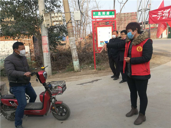 臘月三十那天,餃子剛剛包好,王愛(ài)月同志臨危受命,根據(jù)鎮(zhèn)黨委安排部署,果斷迅速組織布防嚴(yán)控,立即進(jìn)入疫情防控第一線。鄉(xiāng)鎮(zhèn)召集各村黨支部書記召開(kāi)會(huì)議,分析研判嚴(yán)峻形勢(shì),要求各村支部發(fā)揮基層組織“戰(zhàn)斗堡壘”作用,立即摸清情況,穩(wěn)定群眾情緒,增強(qiáng)群眾信心;鎮(zhèn)中心衛(wèi)生院給各村醫(yī)安排防疫工作。會(huì)后,村兩委班子第一時(shí)間成立了奉母鎮(zhèn)后邵村防控新冠肺炎疫情領(lǐng)導(dǎo)小組,王愛(ài)月?lián)胃苯M長(zhǎng),協(xié)助支部書記制定全村防控應(yīng)急處置方案,負(fù)責(zé)處理疫情持續(xù)期間各類防控工作,結(jié)合后邵村實(shí)際,從疫情摸排、防控物資采購(gòu)、應(yīng)急值守、各場(chǎng)所消毒、道路設(shè)卡等各方面全面做好準(zhǔn)備。全村組建6個(gè)排查組對(duì)全村居民逐戶排查,她親自帶隊(duì)逐戶排查所有外來(lái)人員,確保不漏一戶一人。之后,建立排查臺(tái)賬,及時(shí)準(zhǔn)確掌控疫情動(dòng)態(tài),為每位務(wù)工返鄉(xiāng)人員發(fā)放了注意事項(xiàng)告知書和宣傳單,對(duì)外出返鄉(xiāng)人員落實(shí)了包戶責(zé)任制。同時(shí)建立防控微信群,實(shí)時(shí)掌握他們的身體情況,解答他們的疑惑,全力做好心理疏導(dǎo)工作,切實(shí)解決鄉(xiāng)里鄉(xiāng)親的困難問(wèn)題。