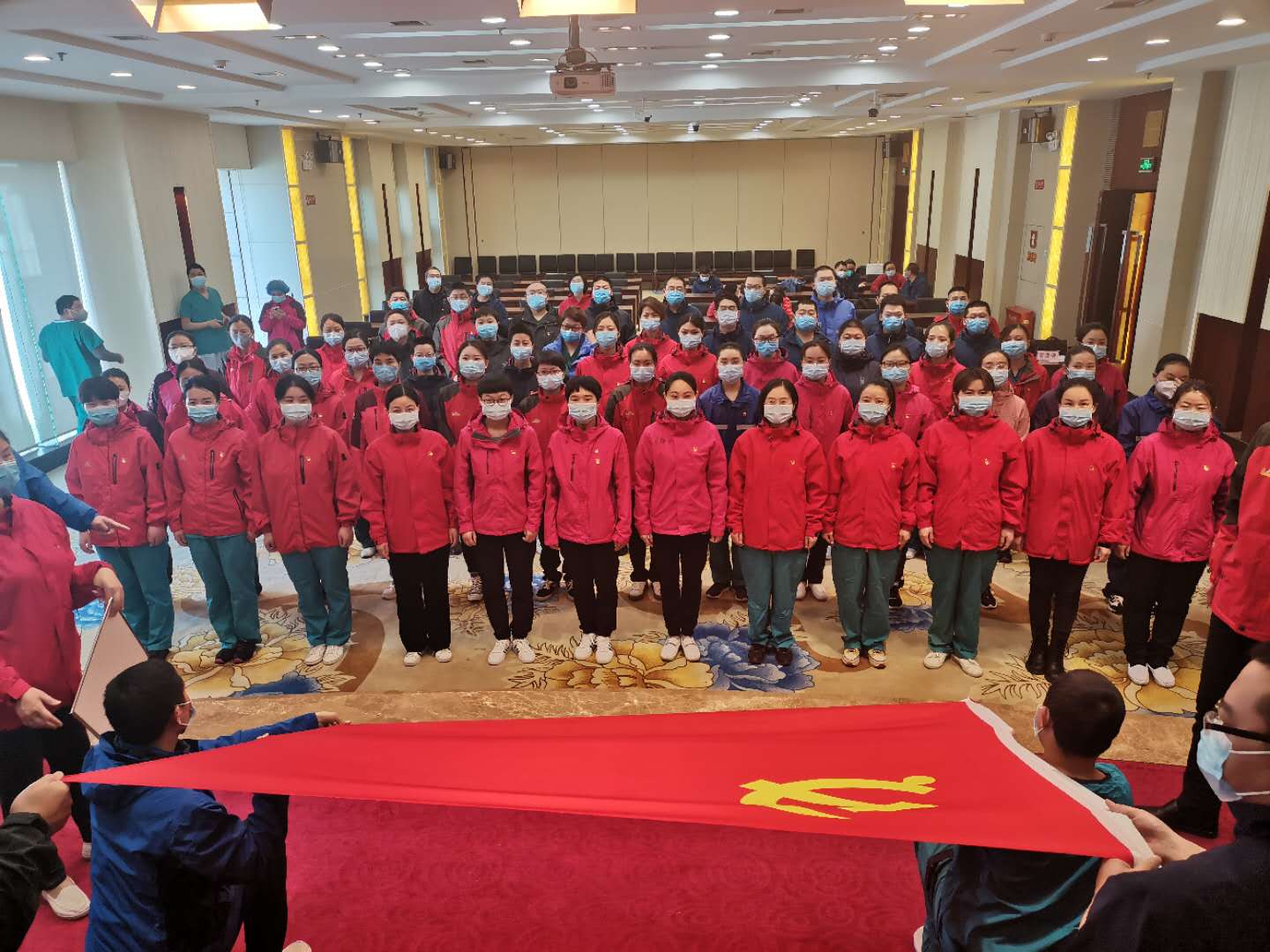 繼3月17日周口援鄂醫(yī)療隊的周口市中心醫(yī)院2名隊員火線入黨后,3月19日,周口援鄂醫(yī)療隊周口市中心醫(yī)院祁文麗、徐貴琴、解玉東、王亞麗、王玉才、王冰清6名隊員,站在鮮紅的黨旗面前莊嚴宣誓志愿加入中國共產(chǎn)黨。