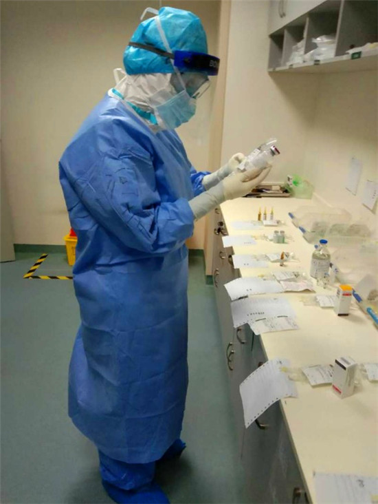 周口市中心醫(yī)院心血管內(nèi)科三病區(qū)護(hù)士孫慧慧是周口援鄂醫(yī)療隊(duì)第一個(gè)上“治療+辦公班”的護(hù)士。“可能新疆隊(duì)的老師知道我們兩家醫(yī)院使用的是同一個(gè)數(shù)字化醫(yī)療處理系統(tǒng),我又經(jīng)常上辦公班的緣故吧?!睂O慧慧說(shuō),“簡(jiǎn)單來(lái)說(shuō),辦公班負(fù)責(zé)處理醫(yī)囑,治療班負(fù)責(zé)配兌藥物。在這里,一個(gè)人要擔(dān)負(fù)起這兩個(gè)職能。”