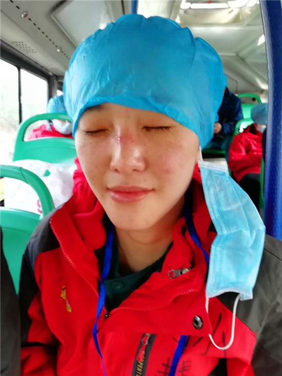 四個(gè)小時(shí)很快就在緊張忙碌中過去了。接班的新疆醫(yī)療隊(duì)護(hù)士來(lái)了,催促孫慧慧趕緊下班。在密閉的環(huán)境,穿著密不透風(fēng)的防護(hù)服工作,時(shí)間長(zhǎng)了會(huì)胸悶缺氧,“她就一直催我下班”。
