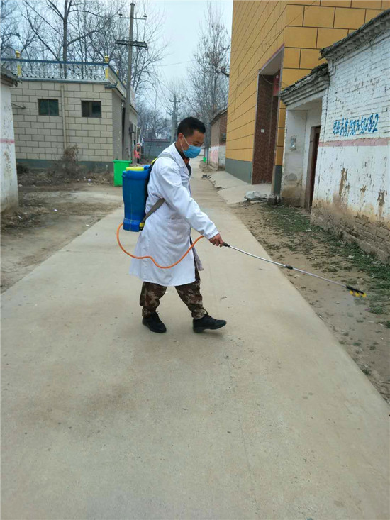 他不是為村民分發(fā)消毒液,就是對(duì)村主干道、公共衛(wèi)生間每天堅(jiān)持消毒,雙腿累腫了,嘴唇起了泡,可他咬牙堅(jiān)持。村委成員見(jiàn)他每天像個(gè)陀螺一樣高速的運(yùn)轉(zhuǎn)著,讓他休息幾天,可楊建崗說(shuō)啥也不同意。每天還是堅(jiān)持著值班,發(fā)現(xiàn)問(wèn)題及時(shí)糾正,對(duì)有些不理解的村民進(jìn)行說(shuō)服教育。除了值班,他還與其他志愿者一起做好流動(dòng)崗,發(fā)現(xiàn)有扎堆的村民立即勸阻,發(fā)現(xiàn)有不戴口罩者一律勸回,對(duì)亂走親戚的村民堅(jiān)決說(shuō)“不”。