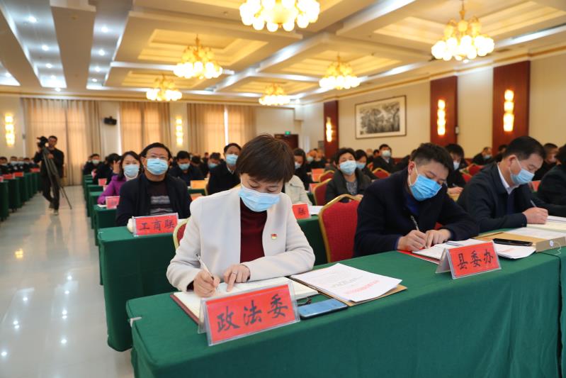 會議傳達了中央、省委、市委政法工作會議精神,表彰獎勵了政法工作優(yōu)秀單位和先進個人,宣讀了《關于對我縣在2019年全市平安建設公眾安全感和政法機關執(zhí)法工作滿意度調查情況的通報》《關于表彰2019年度平安建設、防范處理邪教工作優(yōu)秀單位和先進工作者的決定》《太康縣平安建設工作考核獎懲辦法》;縣委副書記、政法委書記劉海艇總結了2019年度政法工作并對2020年全縣政法工作進行安排部署;各鄉(xiāng)鎮(zhèn)黨委書記向縣委書記王國璽遞交了平安建設目標責任書。王國璽作了重要講話。