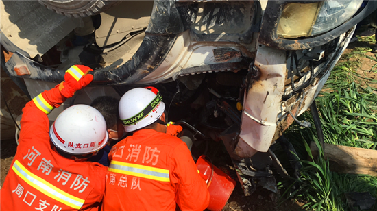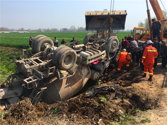 4月7日9時許,沈丘縣李老鄉(xiāng)劉堂村附近一輛攪拌車翻入溝內(nèi),司機(jī)人被困。接到報警后,沈丘縣消防救援大隊立即出動前往救援。