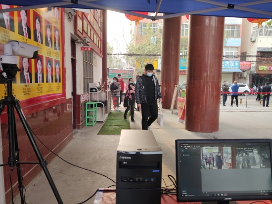 清晨6:30,鄲城縣第二實驗中學(xué)工作人員已經(jīng)按照演練預(yù)案準(zhǔn)時到位,學(xué)校大門兩側(cè)入口處安置有紅外測溫設(shè)備?!爱?dāng)學(xué)生走進(jìn)測溫儀,屏幕中的人像就能顯示體溫了?!钡诙嶒炛袑W(xué)校長邢懷芳說,這個紅外線測溫儀是個“黑科技”,運用熱成像原理,能快捷、精準(zhǔn)檢測體溫,使學(xué)生快速通過,避免出現(xiàn)“扎堆”現(xiàn)象。