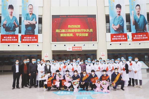 本報(bào)訊 (記者 宋風(fēng) 文/圖) 4月15日,周口港區(qū)醫(yī)院8位援鄂醫(yī)療隊(duì)員解除隔離回到單位,港區(qū)醫(yī)院為他們舉行了熱烈的歡迎儀式(右圖)。港區(qū)黨委委員張東立出席歡迎儀式,對(duì)港區(qū)醫(yī)院的8位抗疫英雄圓滿(mǎn)完成援鄂醫(yī)療救治任務(wù)平安歸來(lái)表示祝賀。