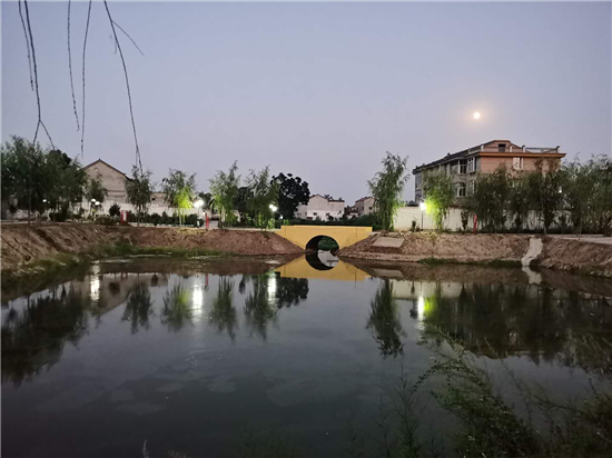 “整治后的坑塘邊綠村成蔭,不時(shí)有小鳥掠過水面又飛回樹梢;村頭巷尾、花開四季,孩童們在村中追逐嬉鬧,老人們在村道上怡然自得地徜徉散步,歡笑不斷;群眾文化廣場上,村民集聚在這里休閑、娛樂、健身,成了村里人氣最旺的地方?!绷硪粋€(gè)具有代表性的鄉(xiāng)村振興新版本是馬鋪鎮(zhèn)最南端軍吳行政村,這個(gè)村子位于惠濟(jì)河北岸,207省道橫穿南北,轄軍吳,高口,高莊,吳樓,許莊,王莊,豆腐營七個(gè)自然村,耕地面積4288畝,總?cè)丝跀?shù)4236人。近年來,這個(gè)村子除大力發(fā)展中藥材、蔬菜等經(jīng)濟(jì)作物種植外,還以“二四四”工程和“雙強(qiáng)”村創(chuàng)建為抓手,開展“美麗鄉(xiāng)村”行動,打造美麗庭院,對村中主次道路進(jìn)行硬化、綠化、美化、亮化,發(fā)展以生態(tài)為底色的宜居宜游農(nóng)旅村落,成為鹿邑縣首批“千萬工程”示范村。