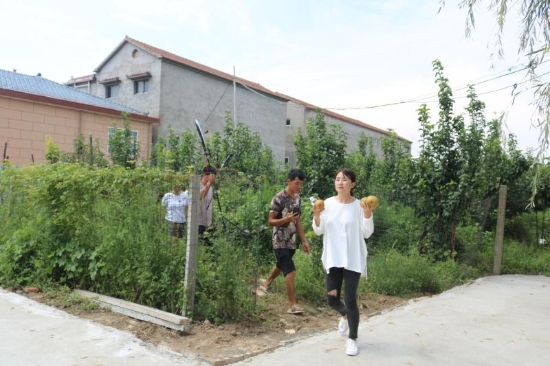 上任伊始,許天勇充分利用水域面積大的優(yōu)勢,發(fā)展鄉(xiāng)村旅游經(jīng)濟(jì),把整理出來的水域種上了荷花,放上了魚苗,在村里還建起了四橦民宿建筑,在廣場邊村里統(tǒng)一管理的一處民宿內(nèi)興辦了特色餐飲,讓來這里垂釣的人有得玩、有得吃、還有得住。許天勇指著許莊村頭的一處坑塘說:“這是我們治理出來比較大的一處,鎮(zhèn)里牽頭在坑塘兩側(cè)建起了扶貧富民冷庫,還建成1200多平方米的游園、近3000平方米的垂釣園,另外,村里又把平整出14.2畝土地種上的梨樹,承包給村民進(jìn)行果蔬間作,現(xiàn)在梨樹已進(jìn)入盛果期,預(yù)計(jì)今年凈收益4萬元左右。”