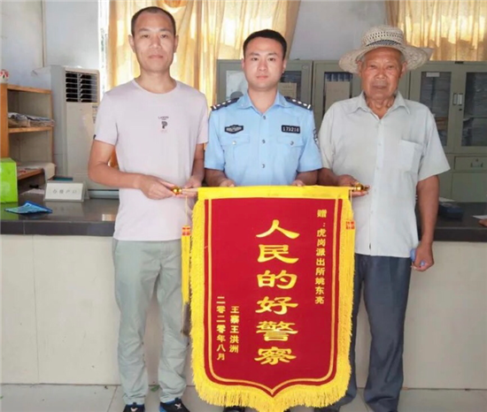 “沒(méi)想到,真沒(méi)想到,我這輩子還能與兒子相見(jiàn),太感謝你了?!弊蛉?,鄲城縣虎崗鄉(xiāng)派出所戶籍室門口鞭炮齊鳴,該鄉(xiāng)王寨行政村75歲的貧困戶王洪周和兒子王鐵練及親屬向戶籍民警姚東亮送上錦旗后,感激之情溢于言表。