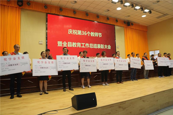 與會領(lǐng)導還分別為優(yōu)秀教師、優(yōu)秀教育工作者、師德標兵代表、最美教師、教育全面工作先進單位、尊師重教先進鄉(xiāng)鎮(zhèn)、尊師重教先進局委和2020年考入清華、北大學生及家長進行了頒獎。