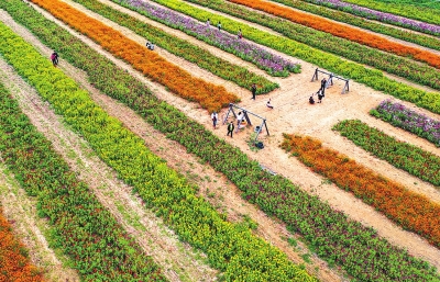 二○一八年以來,我省共創(chuàng)建224個“美麗小鎮(zhèn)”3388個“四美鄉(xiāng)村”94.6萬個“五美庭院” “十一”假期,游客在寧陵縣邏崗鎮(zhèn)黃老家村花海中賞花。該村打造生態(tài)花田小鎮(zhèn),吸引了眾多游客前來拍照游玩,有力提高了當(dāng)?shù)卮迕袷杖?。呂忠箱攝 |