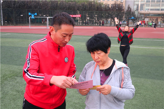 活動中,志愿者們向晨練的群眾發(fā)放健康運動提示卡、防范電信詐騙、掃黑除惡、不動產(chǎn)登記等方面的宣傳材料,免費派發(fā)“愛心粥券”;細心講解老年人常見的十大心理、常見病的預防等強身健體保健常識,引導群眾合法應(yīng)對“保健品大促銷”、“集資詐騙”等典型詐騙行為;倡導老年人多了解法律知識,以提高識別詐騙、自我維權(quán)的能力。同時,志愿者們主動拾撿體育場內(nèi)的樹葉、雜物等,為晨練群眾創(chuàng)造干凈衛(wèi)生的健身環(huán)境,深受群眾喜愛和稱贊。
