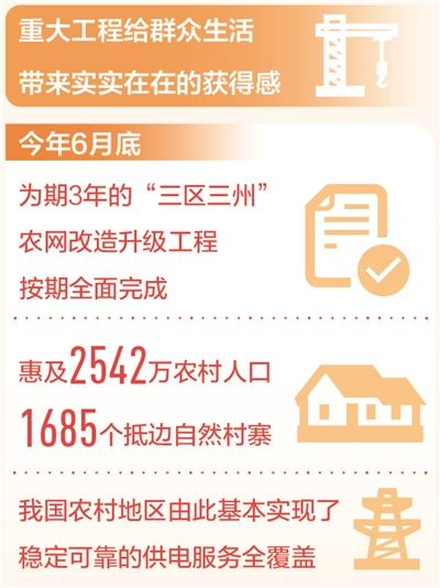 從“用上電”到“用好電”,今年6月底,為期3年的“三區(qū)三州”農(nóng)網(wǎng)改造升級工程按期全面完成,惠及2542萬農(nóng)村人口、1685個抵邊自然村寨,我國農(nóng)村地區(qū)由此基本實現(xiàn)了穩(wěn)定可靠的供電服務全覆蓋。