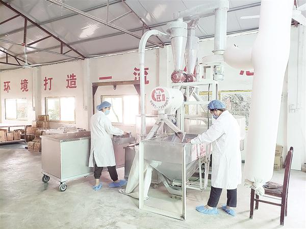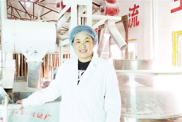 喜俊喜家庭農(nóng)場(chǎng)總經(jīng)理王春麗在黑小麥面粉生產(chǎn)車間。