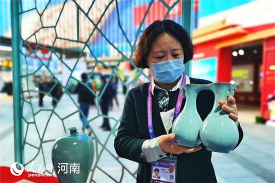 在非遺展示區(qū),河南帶來的汝瓷、絞胎瓷、懷山藥古法炮制技藝,引得客商們駐足關(guān)注。汝瓷燒制技藝代表性傳承人王振芳帶來了200多件展品,希望通過進(jìn)博會(huì),讓世界更了解中國(guó)名瓷,河南名瓷。