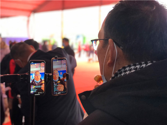 28日早上7時許,周口網(wǎng)紅俱樂部的網(wǎng)紅們和工作人員就開始為今天的直播做準(zhǔn)備,早早把直播設(shè)備搬到現(xiàn)場,進行調(diào)試。10時左右,周商產(chǎn)品展示展覽活動現(xiàn)場人頭攢動,熱鬧非凡,來自周口本地的9位網(wǎng)紅們陸續(xù)架好手機直播設(shè)備,打開補光燈,開始直播?,F(xiàn)場的9位網(wǎng)紅各有特色,有打扮時髦的美女主播,有歌聲出眾的中年大叔,年齡最大的網(wǎng)紅是今年65歲的鹿邑大爺。網(wǎng)紅們一手拿著周口的蜂蜜、空心掛面、麻花、粉條、醬豆等土特產(chǎn),一邊對著手機屏幕里的粉絲熱情地展示和介紹起來,有的還直接進行現(xiàn)場吃播,不時與網(wǎng)友進行唱歌、聊天互動,吸引了不少行人前來觀看。“原來在抖音上看過網(wǎng)紅帶貨,但沒見過真人, 今天終于見到真實的網(wǎng)紅了!感覺很有意思!”前來觀展的市民劉女士說。
