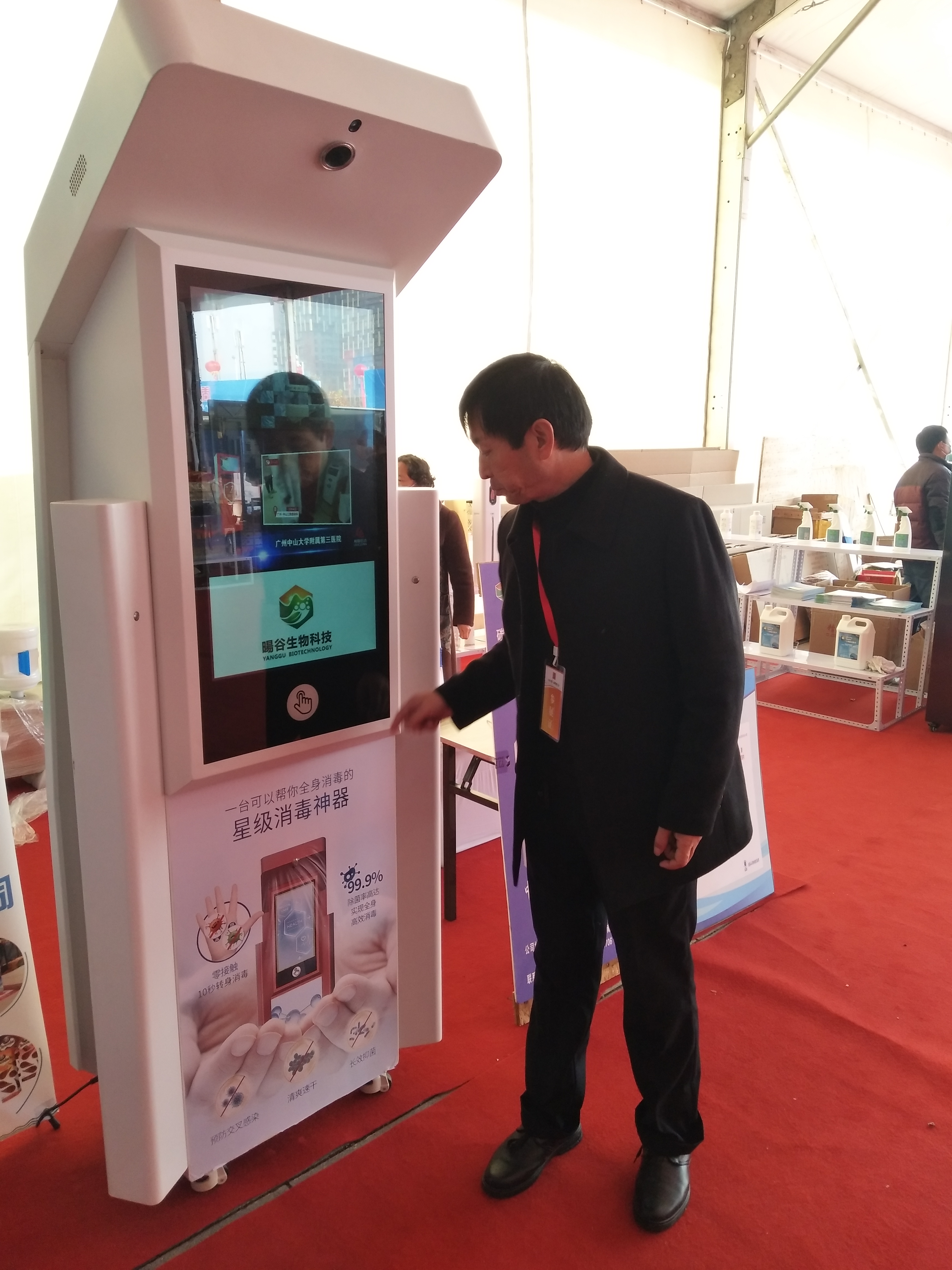 手掌往感控區(qū)上輕輕一罩,液晶屏四角就噴出霧化消毒液,大概持續(xù)10秒,足夠人轉一圈做周身消毒——在周商產品展示展覽大廳的西南角,北京陽谷生物科技有限公司市場部總監(jiān) 、項城人張清峰在介紹“人體感應消毒機”,引得市民紛紛圍觀體驗。由于消毒液沒有異味,部分市民質疑是清水,對此張清峰說:“我們用的是‘竹芳牌’碳酸型微酸性次氯酸消毒液,我們的消毒機主要是面向校園推廣的,給孩子用的東西除了要有效,還得保證安全溫和,碳酸型的消毒液就沒有這么大的刺激性。”據(jù)張清峰介紹,“人體感應消毒機”是今年五月下旬生產的新品,目前處在推廣階段,“當?shù)弥芸谝k第一屆周商大會的消息,我第一時間想到要把消毒機展示給家鄉(xiāng)父老。我是個在北京打拼十多年的項城人,目前河南分公司由我負責,項城市政府給了我很多支持?!?/p>