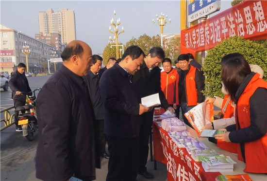 12月4日上午,鄲城縣在世紀(jì)廣場(chǎng)舉行國(guó)家憲法日宣傳活動(dòng),縣領(lǐng)導(dǎo)李全林、王獻(xiàn)超、李建軍、王偉、常青、馬超、劉輝、薛燕、謝超、蔣磊等縣四個(gè)班子領(lǐng)導(dǎo)出席活動(dòng)。