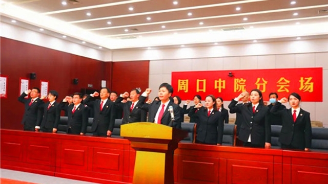 12月4日是第七個國家憲法日。為弘揚(yáng)憲法精神、維護(hù)憲法權(quán)威,當(dāng)日,川匯區(qū)人和街道辦事處全體班子成員、機(jī)關(guān)干部、人大聯(lián)絡(luò)站代表、各社區(qū)“兩委”班子成員90余人在辦事處新時代文明實(shí)踐所舉行了憲法宣誓活動。