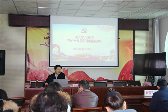 “黨的十九屆五中全會是在我國將進(jìn)入新發(fā)展階段、實(shí)現(xiàn)中華民族偉大復(fù)興正處于關(guān)鍵時期召開的一次具有全局性、歷史性意義的會議。”12月19日,扶溝縣審計局召開學(xué)習(xí)貫徹十九屆五中全會精神宣講大會,由局黨組書記翟連生作宣講報告,該局全體干部職工共40余人參加了宣講會。