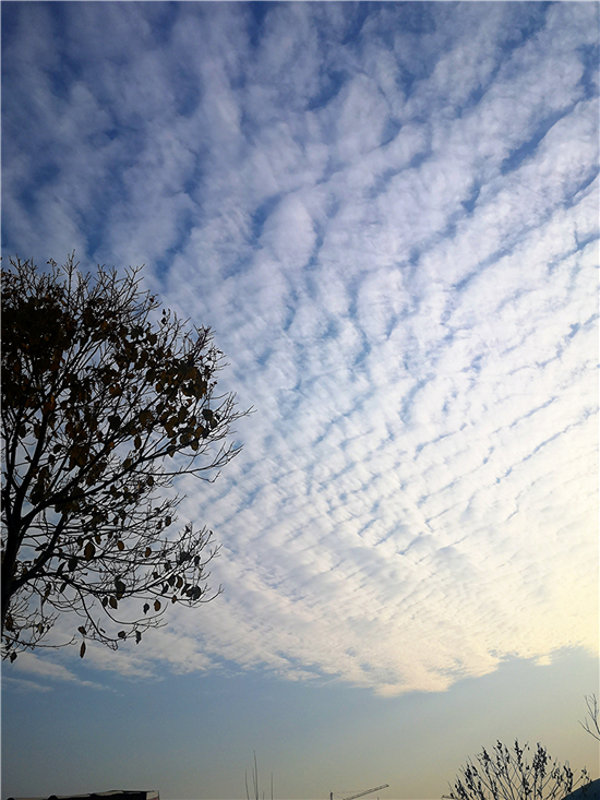 近日,我市天氣晴朗,漫步在街邊小道上,抬頭望去,處處皆是風(fēng)景,比如蔚藍(lán)的天空、挺立的高樓、蒼茫的禿枝……這一切都勾勒成了一幅唯美的冬日畫卷。