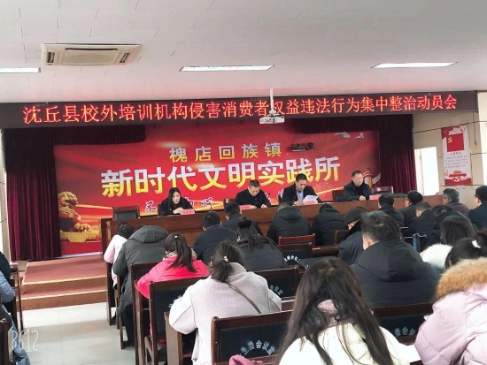 12月23日上午,沈丘縣校外培訓(xùn)機(jī)構(gòu)侵害消費(fèi)者權(quán)益違法行為集中整治動(dòng)員會(huì)在槐店鎮(zhèn)召開。出席會(huì)議的有沈丘縣市場(chǎng)監(jiān)督管理局副局長李春華、教體局副局長李國峰、教體局安全辦主任劉志強(qiáng)等,各鄉(xiāng)鎮(zhèn)培訓(xùn)機(jī)構(gòu)負(fù)責(zé)人參加會(huì)議,會(huì)議由槐店鎮(zhèn)鎮(zhèn)長李傳勝主持。