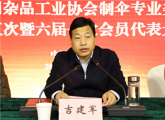 12月23日,中國日用雜品工業(yè)協(xié)會制傘專業(yè)委員會五屆五次暨六屆一次會員代表大會,在被譽(yù)為“中國傘業(yè)之鄉(xiāng)”的鄲城縣召開。周口市委常委、常務(wù)副市長吉建軍,市人大常委會副主任、鄲城縣委書記羅文閣,縣長李全林,中國日用雜品工業(yè)協(xié)會理事長楊西京、副理事長肖卓玲、秘書長夏琳,中國日用雜品工業(yè)協(xié)會制傘專業(yè)委員會會長蔡卓燐等出席會議。來自全國各地220家制傘企業(yè)負(fù)責(zé)人和代表參加會議。