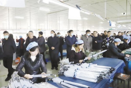 12月23日下午,在鄲城縣舉行的中國日用雜品工業(yè)協(xié)會制傘專業(yè)委員會五屆五次暨六屆一次會員代表大會中,來自全國制傘行業(yè)的精英們先后來到鄲城會客廳、傘業(yè)產(chǎn)業(yè)園、兄和家居、返鄉(xiāng)創(chuàng)業(yè)園、洺河森林樂園、鄲城一高、人民公園、體育場等地,實地感受鄲城高質量發(fā)展成果和傘業(yè)發(fā)展?jié)摿Γ仓\中國傘業(yè)的發(fā)展前景。 記者 徐松 攝