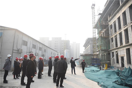 當(dāng)日上午,受院長于健委托,院領(lǐng)導(dǎo)張廣海、葉達(dá)林、王文鋒、王成坤帶領(lǐng)醫(yī)政、護理、控感等相關(guān)職能科室負(fù)責(zé)人,一行20余人到建設(shè)工地現(xiàn)場察看。施工方技術(shù)人員詳細(xì)介紹了門診樓、病房樓等各樓層的功能定位、科室布局、水暖線路等,雙方就一些細(xì)節(jié)問題進行深入交流。