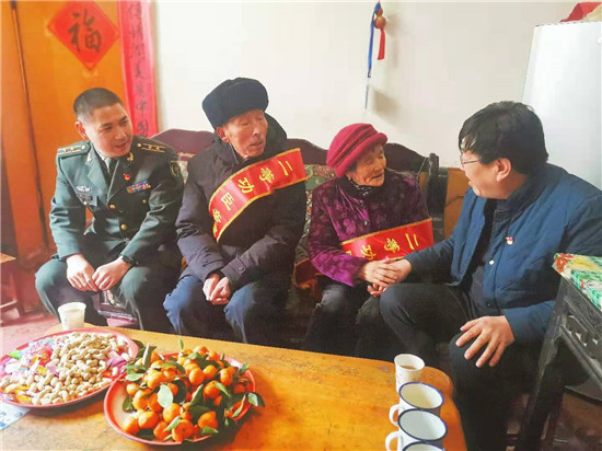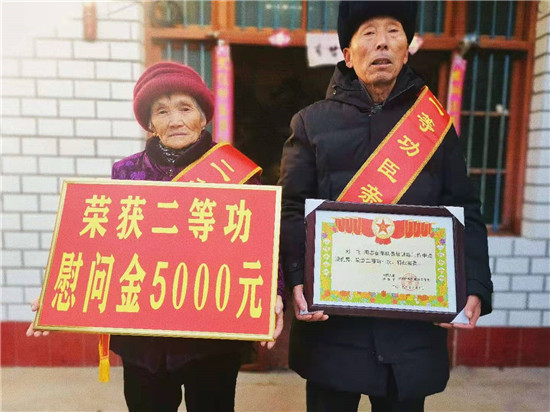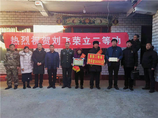 近日,周口市淮陽(yáng)區(qū)人武部與區(qū)退役軍人事務(wù)局相關(guān)領(lǐng)導(dǎo),來(lái)到該區(qū)四通鎮(zhèn)孔北行政村劉莊村,為在部隊(duì)榮立二等功的現(xiàn)役軍人劉飛的父母送去立功喜報(bào),并送上慰問品及慰問金。臨走,劉飛的父親劉啟來(lái)說(shuō):“請(qǐng)領(lǐng)導(dǎo)放心,俺會(huì)讓孩子在部隊(duì)更加安心服役,力爭(zhēng)取得更大成績(jī),多為家鄉(xiāng)增光添彩?!保◤埲?張雙斌 攝影報(bào)道)