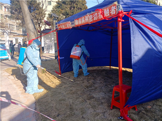 演練開始后,公安部門按照新冠肺炎疫情公共衛(wèi)生應(yīng)急處置預(yù)案要求,立即下達(dá)指令,派出所民警到達(dá)現(xiàn)場維護(hù)秩序,區(qū)域控制,拉警戒線,嚴(yán)格管控人員,禁止一切車輛和人員通行。街道辦事處迅速組織社區(qū)干部及社區(qū)網(wǎng)格員開展核酸檢測和宣傳動員工作,根據(jù)應(yīng)急預(yù)案分工開展群眾宣傳動員工作,并對患者居住單元電梯樓道等公共區(qū)域進(jìn)行消毒。工作人員到確診患者家對2名密切接觸者進(jìn)行流調(diào)和健康教育,將密切接觸者用120負(fù)壓救護(hù)車單人單車轉(zhuǎn)運至集中醫(yī)學(xué)隔離觀察點,對確診病例家庭環(huán)境進(jìn)行采樣和消殺。