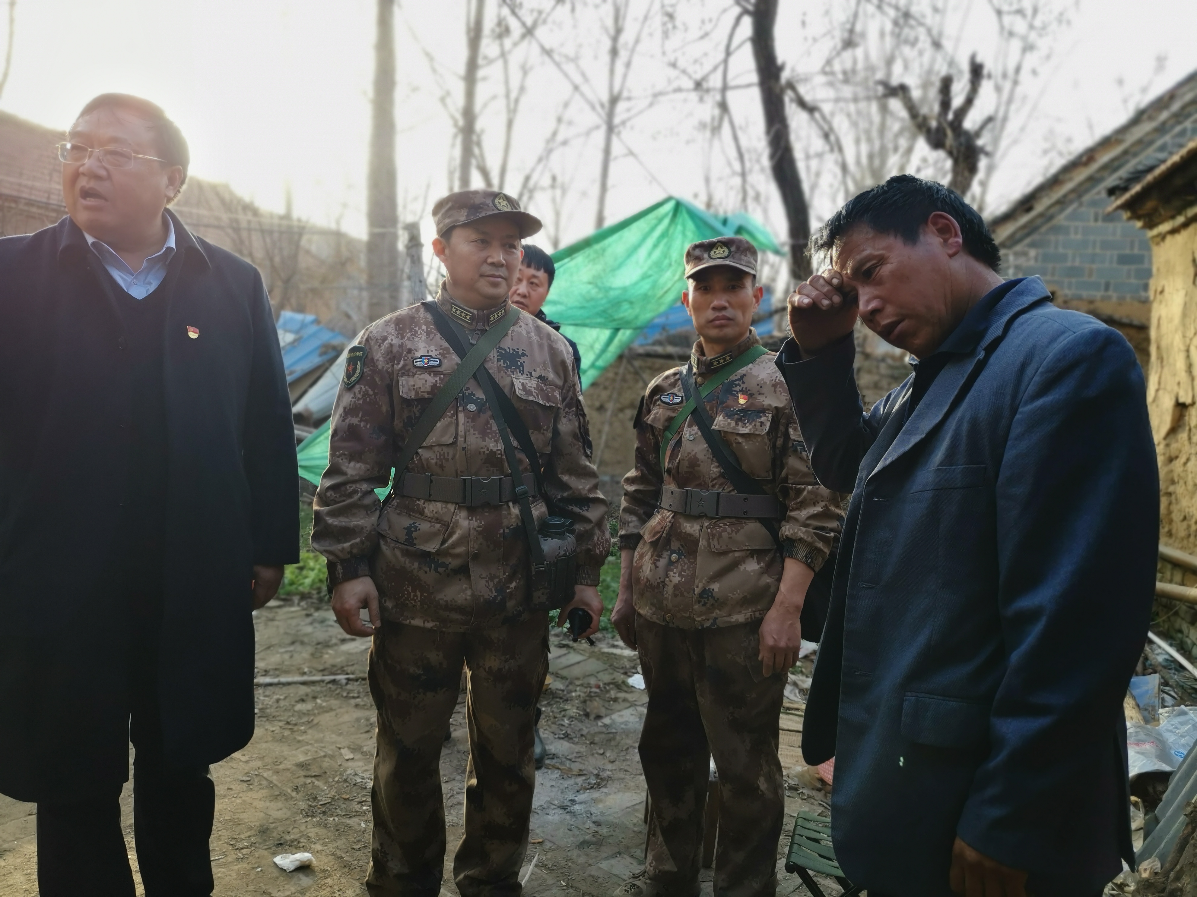 周口軍分區(qū)還將政治工作貫穿于野營拉練全過程,當(dāng)行至周口港區(qū)苑寨行政村時,薛振喜、周口軍分區(qū)政治工作處主任李揚(yáng)以及川匯區(qū)人武部部長陳繼芳、政委高新傳等來到貧困戶苑立中家中慰問,為他們送去米面糧油等慰問品。看著簡陋的房屋,得知苑立中獨(dú)自一個人拉扯3個孩子的艱辛生活后,薛振喜囑咐當(dāng)?shù)卣臀溲b部門要想辦法幫扶這戶貧困家庭。 苑立中激動地流下眼淚,握著薛振喜的手連聲感謝。