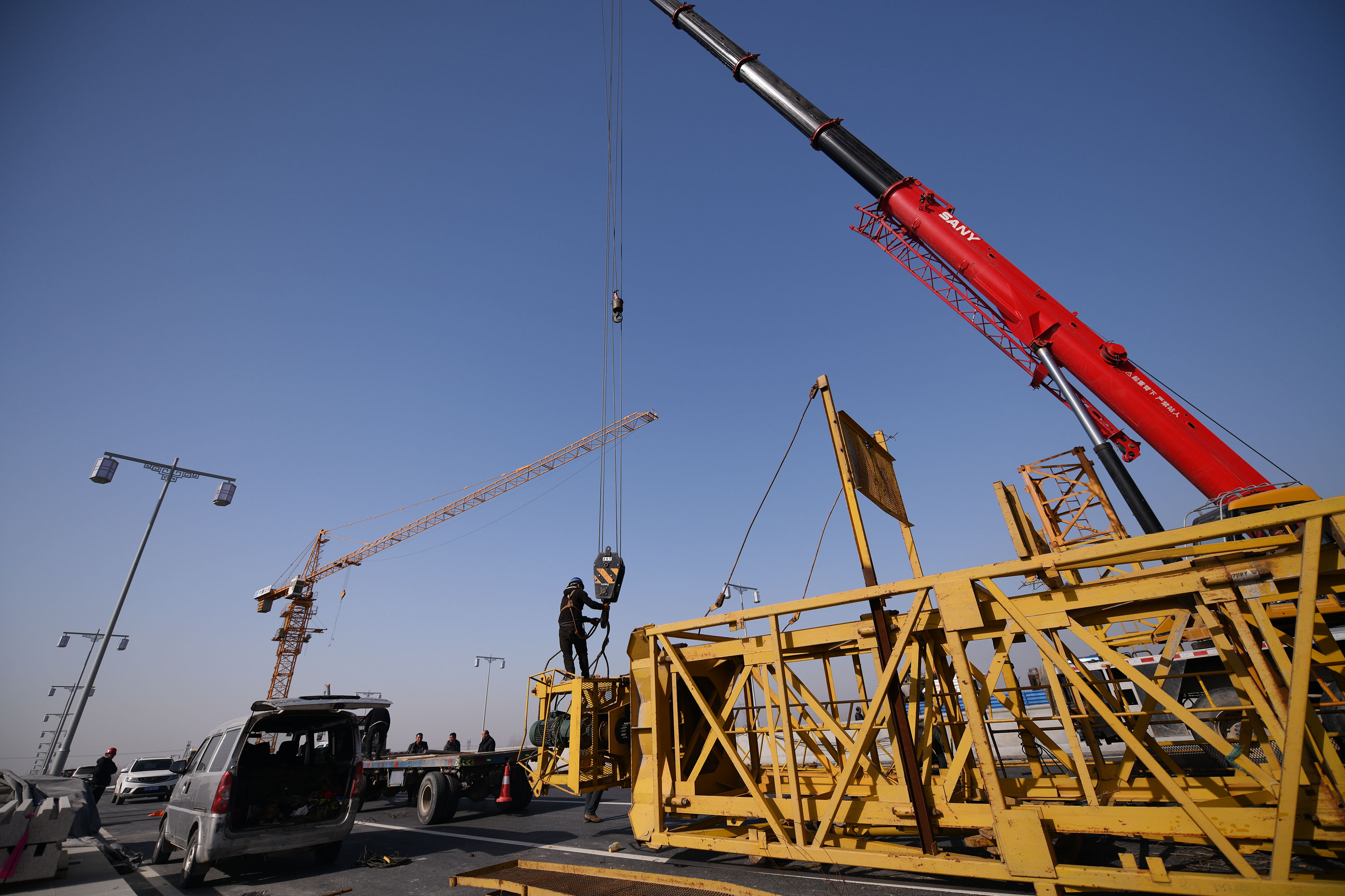 記者在賈魯河大橋工地上看到,900多米長的北環(huán)路跨賈魯河大橋,如一條彩虹凌空穿越賈魯河上空,橋上已經(jīng)裝上燈桿,宮燈古樸又雅致,甚是好看。工人們有的正在拆除橋體施工用的吊塔,有的忙著對側(cè)分帶、人行道和橋欄桿施工,橋面行車道已經(jīng)開始畫線,為通車做準(zhǔn)備。