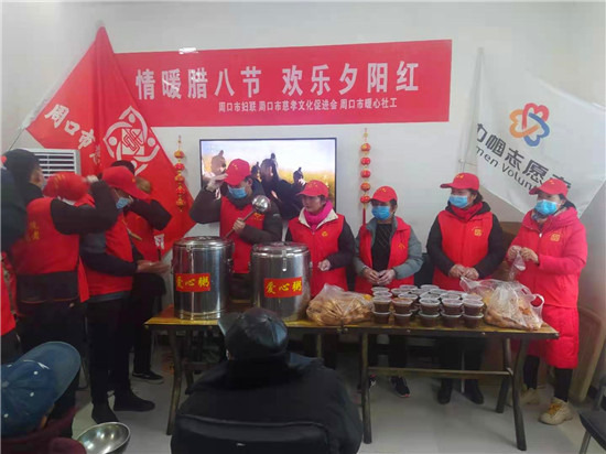 1月20日是臘八節(jié),市婦聯(lián)、市慈孝文化促進(jìn)會(huì)的志愿者來(lái)到城鄉(xiāng)一體化示范區(qū)搬口辦事處敬老院開(kāi)展“歡樂(lè)臘八節(jié),情暖夕陽(yáng)紅”敬老慰問(wèn)活動(dòng)。志愿者把親手熬制的八寶粥送到老人手中,給老人送去溫暖。