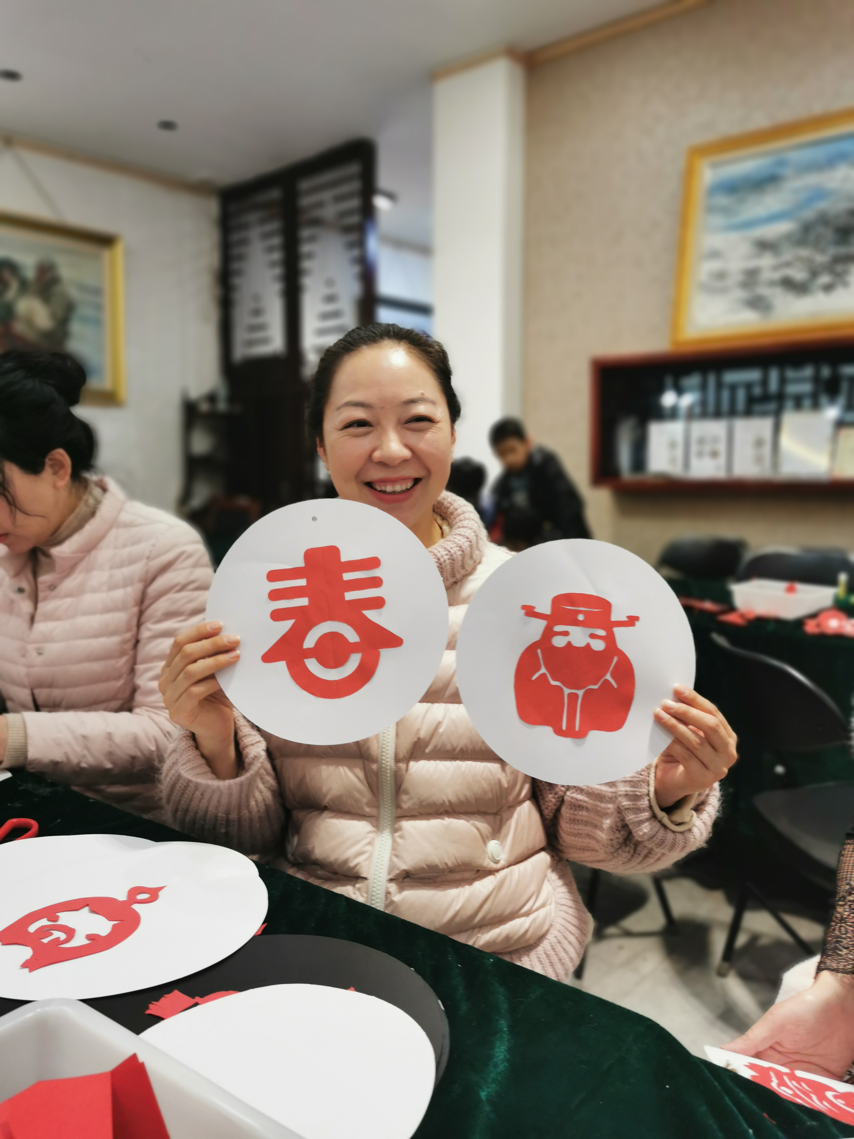 剪紙表現(xiàn)了中華民族淳厚雋永的民情與民風(fēng),是中國民間最為流行的一種藝術(shù)形式。為了讓大家學(xué)習(xí)、傳承這種極具傳統(tǒng)色彩的藝術(shù),蕓雅讀書社組織了學(xué)習(xí)剪紙的活動。現(xiàn)場,大家用剪刀在紅紙上剪出福、祿、壽、喜和各種圖案,極具喜慶吉祥的寓意,讓人們感受到了傳統(tǒng)新年的熱鬧。②8
