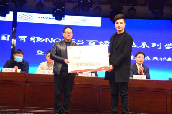 楊雨旺書記介紹了鄲城縣人民醫(yī)院胃腸外科的基本情況以及在近年發(fā)展中取得的長足進(jìn)步。胡軍紅教授在致辭中指出,NOSES作為一種微創(chuàng)中的微創(chuàng)手術(shù),是一種醫(yī)患共贏的好技術(shù),是未來微創(chuàng)外科發(fā)展的趨勢和方向之一。他對不辭勞苦開展公益學(xué)術(shù)講座,推廣NOSES理念和技術(shù)的各位專家表示感謝,同時預(yù)祝系列學(xué)術(shù)活動圓滿成功。 中國胃腸NOSES聯(lián)盟向鄲城縣人民醫(yī)院贈送了《胃腸手術(shù)策略與操作圖解》等專業(yè)書籍20本和超聲刀一套。