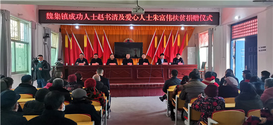 1月29日,天氣乍暖還寒,魏集鎮(zhèn)政府人頭攢動,喜氣洋洋,一片熱鬧的景象。內(nèi)蒙古希拉穆仁旅游置業(yè)開發(fā)有限公司董事長、內(nèi)蒙古楊子照明鋼桿制造有限責(zé)任公司董事長、內(nèi)蒙古周口商會會長趙書清和愛心人士朱富偉一行,帶著整整兩卡車米、面、油共計八萬元生活物資,回到家鄉(xiāng)魏集鎮(zhèn)開展扶貧濟困活動,在嚴(yán)寒的冬日給魏集鎮(zhèn)困難群眾帶來了溫暖和祝福??h政協(xié)主席孫培忠,縣委常委、宣傳部長李本磊出席活動。魏集鎮(zhèn)黨委書記衛(wèi)春忙,鎮(zhèn)長劉艷光參加活動。