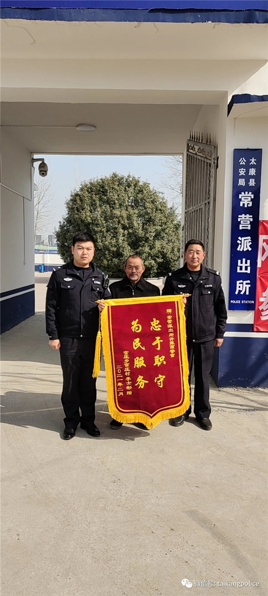 為了表達對民警的謝意,2月2日中午,老人特意趕制了一面錦旗,送到常營派出所許振雨等民警手中。③2