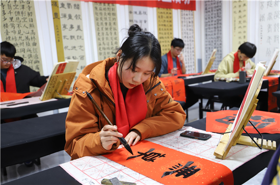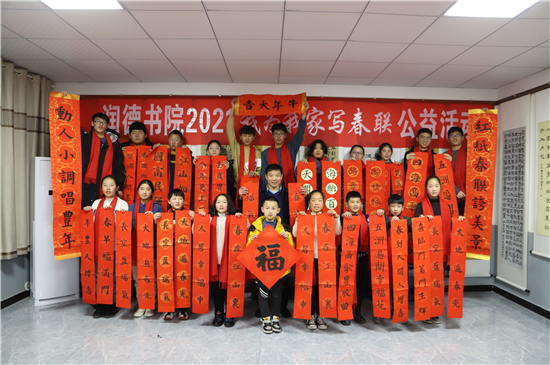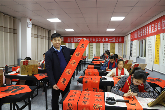 “春聯(lián)是我們中華民族獨有的文化符號,象征著喜慶,蘊含著吉祥。我為我家寫春聯(lián)公益活動具有很強的廣泛性、群眾性、公益性,送祝福、亮成績與弘揚傳承中華優(yōu)秀傳統(tǒng)文化相結合,在學生心中樹立了文化自信?!标悈顷懶牢康卣f。