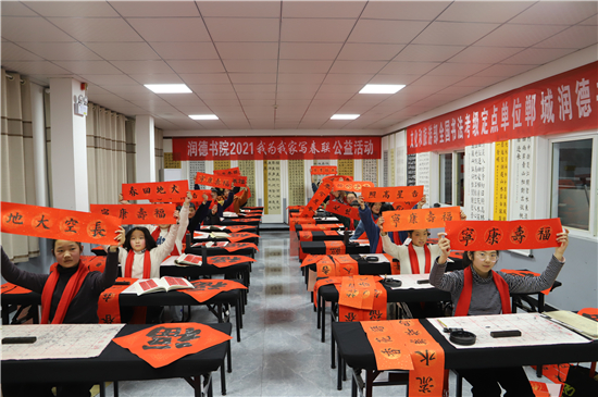 春節(jié)前夕,鄲城縣的書法家和書法愛好者們便更顯活躍,他們進機關、進企業(yè)、進社區(qū)、進學校、進農(nóng)村,把富有中國特色的新春祝福,富含中國傳統(tǒng)文化的春聯(lián),送到千家萬戶。