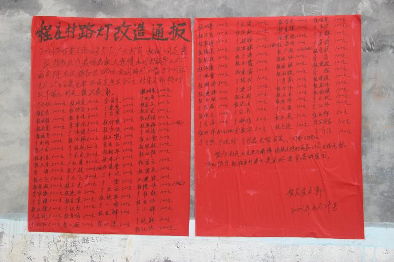 2021年2月3日,周口市商水縣郝崗鎮(zhèn)程莊村的一面墻上的紅紙黑字大字報(bào)吸引了記者的注意,上面密密麻麻地寫著愛心村民的姓名和捐款金額,經(jīng)走訪村干部得知實(shí)情。