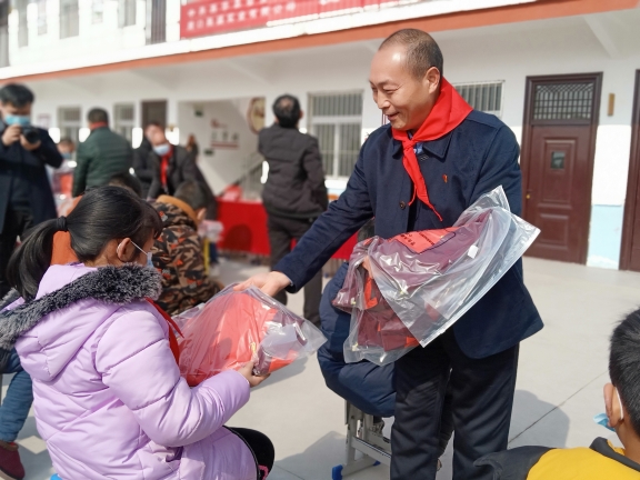 春節(jié)臨近,方凱自掏腰包6萬余元,購買164套新校服捐贈給西華縣艾崗鄉(xiāng)半截樓小學,一如既往地將大愛播撒與傳遞。說起方凱的愛心行動,那是不勝枚舉。方凱10余年來堅持幫貧濟困,每年都采取不同的方式,為貧困戶、貧困大學生、環(huán)衛(wèi)工、留守兒童、敬老院、貧困學校、福利中心智障孩子和災區(qū)等進行愛心捐助,已經(jīng)累計捐款捐物達1600多萬元。為了表達對方凱的謝意,西華縣艾崗鄉(xiāng)半截樓小學向方凱贈送了“大愛無疆育英才,心系未來報黨恩”的錦旗,同時,還鄭重聘請方凱為該校名譽校長。