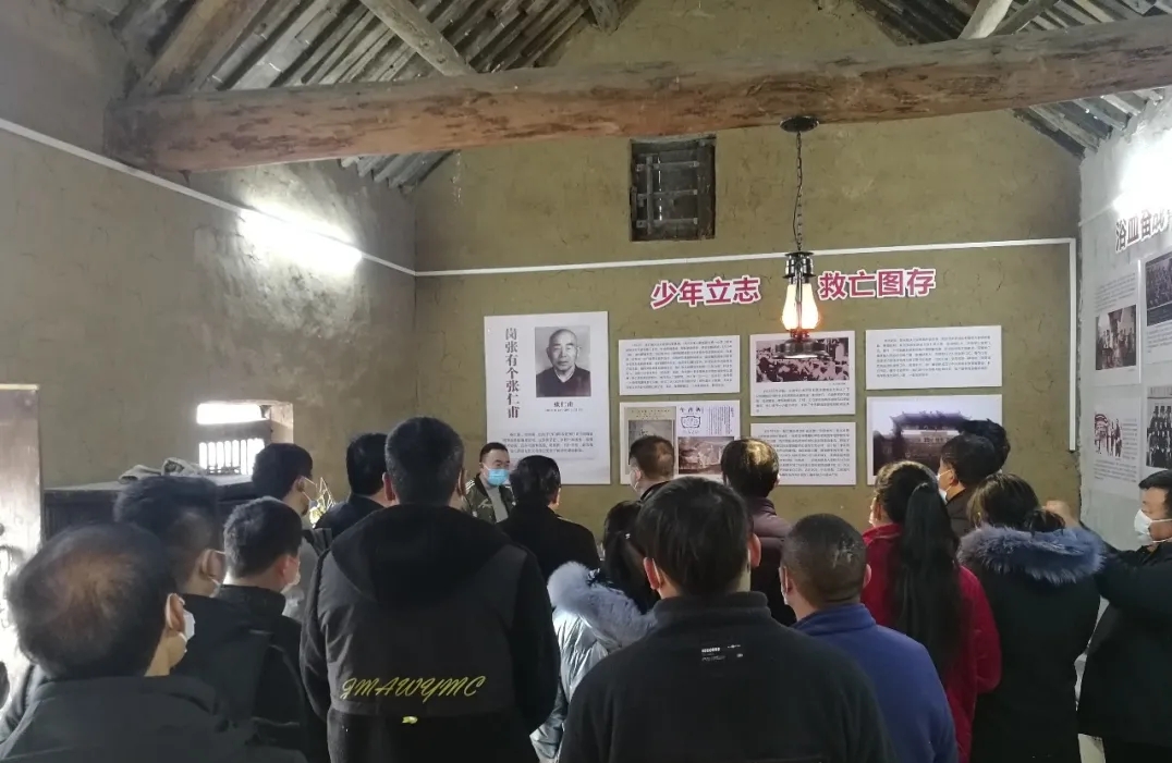 陳鵬指出,中國夢是習(xí)近平總書記提出的新思想、新方略, 中國夢的具體目標(biāo)是達到國家富強、民族復(fù)興、人民幸福, 其實質(zhì)是實現(xiàn)中華民族的偉大復(fù)興。所以, 鄉(xiāng)村振興戰(zhàn)略事關(guān)“三農(nóng)”的發(fā)展, 特別是廣大農(nóng)民的中國夢的實現(xiàn), 是實現(xiàn)整個中華民族中國夢的重要舉措。在改革開放40年的偉大進程中, 黨和國家根據(jù)各個階段出現(xiàn)的不同問題, 提出了不同的戰(zhàn)略思想。當(dāng)今時代,鄉(xiāng)村振興戰(zhàn)略提出了新的總要求, 即產(chǎn)業(yè)興旺、生態(tài)宜居、鄉(xiāng)風(fēng)文明、治理有效、生活富裕,為新時代發(fā)展和解決“農(nóng)業(yè)、農(nóng)村、農(nóng)民”問題提供了有效途徑。陳鵬強調(diào),在今后的鄉(xiāng)村振興工作中,大家要牢固樹立“四個意識”,堅定“四個自信”,不忘初心、立足崗位、扎實工作,增強責(zé)任擔(dān)當(dāng),保持先鋒本色,以嶄新的精神風(fēng)貌、飽滿的工作熱情、堅強的意志品質(zhì),傳承紅色基因,講好奉母故事,深化“六個”活動,大力發(fā)展集體經(jīng)濟,提升村民獲得感、幸福感指數(shù)。一是開展“支部聯(lián)手、共奔小康”結(jié)對幫扶活動,讓黨員先“動起來”。二是開展“咱村怎么干,大家說了算”村情民意大調(diào)查活動,把干群心“聚起來。三是創(chuàng)辦“鄉(xiāng)村大食堂”,把老年人“養(yǎng)起來”。解決鰥寡孤獨老人吃飯問題,探索“以土地養(yǎng)老、以房屋養(yǎng)老、以股份養(yǎng)老”新的養(yǎng)老服務(wù)模式,最終實現(xiàn)全民養(yǎng)老,構(gòu)建“老有所養(yǎng)、老有所為、老有所依、老有所樂”的服務(wù)體系。四是組建鄉(xiāng)村振興“婦女文藝宣傳隊”,把半邊天“組織起來”。五是改建“農(nóng)家書屋”,把青少年“管起來”。利用閑散房屋改建農(nóng)家書屋,退休教師義務(wù)參加輔導(dǎo),有效解決留守兒童放學(xué)后無人輔導(dǎo)的現(xiàn)實問題和外出務(wù)工父母的后顧之憂,讓他們在愉快的環(huán)境下學(xué)習(xí)知識、開闊視野,為今后的鄉(xiāng)村振興儲備人才。六是整合資源,把產(chǎn)業(yè)“做起來”。黨支部要領(lǐng)辦供銷合作社,以“三變改革”為抓手,采取“四荒地、四邊地”綜合整治,盤活沉睡資源,迸發(fā)集體經(jīng)濟活力,穩(wěn)步推進農(nóng)村產(chǎn)權(quán)制度改革,把村民分散的土地、人力、資金、房屋等資源進行整合,成立土地股份合作社、勞務(wù)股份合作社、置業(yè)股份合作社、旅游餐飲服務(wù)股份合作社、電子商務(wù)股份合作社等“五大合作社”,對入股村民進行入股分紅和集體紅利二次分配,讓群眾感黨恩、聽黨話、跟黨走,享受集體經(jīng)濟發(fā)展帶來的更大紅利。屆時我們會在做好村級五大合作社的基礎(chǔ)上,探索建立鎮(zhèn)域級合作社,整合全鎮(zhèn)各村資源,聯(lián)手打造農(nóng)村集體經(jīng)濟航空母艦,由過去各村單打獨斗變?yōu)榇迓?lián)手闖市場,提高市場競爭力和抗風(fēng)險能力,以此推動奉母農(nóng)村集體經(jīng)濟健康快速發(fā)展。黨課結(jié)束后,在講解員的帶領(lǐng)下,大家依次參觀了周口市第一個黨支部舊址,認真參觀每一件實物,用心聆聽每一個故事,與會人員不禁為奉母籍革命老前輩張仁甫帶領(lǐng)大家推翻封建社會三座大山不屈不撓的英雄壯舉斗爭紛紛點贊!