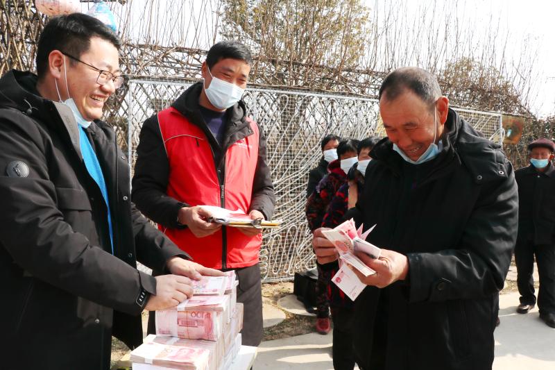 宋傳東、宋建超、王龍、魏端明、張鳳云......村民們領過錢,歡笑著離開現(xiàn)場。當日,合作社向村民們發(fā)放了150萬元的租金、工資和分紅。涉及城郊鄉(xiāng)池莊行政村的宋莊、毛莊、王菜園和大于行政村的常莊、楊莊等9個自然村,共計400戶村民。