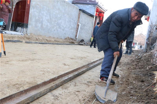 村里找來工程隊(duì)立即開始動(dòng)工修路,群眾自發(fā)來幫忙。“村里大街小巷全部修上了水泥路,這是幾十年來最大的喜事!”李知中邊干活邊笑著說,“我身子骨還算硬朗,就主動(dòng)過來干些力所能及的活,現(xiàn)在全村1500多米的大街小巷即將開始澆筑水泥,修好后給全村帶來了很大的便利,很感激村委領(lǐng)導(dǎo)為群眾辦實(shí)事。”